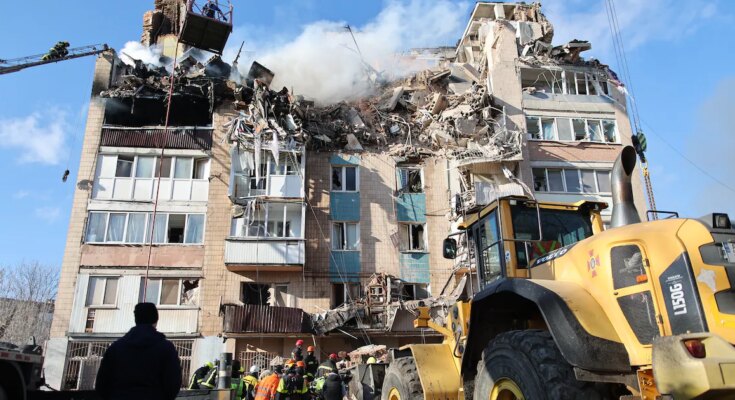 Rescue workers search through ruins in Ternopil, Ukraine, following a devastating Russian missile and drone attack on November 19, 2025. At least 26 people, including 3 children, were killed and 92 others were injured. Two nine-story buildings were badly damaged. image alliance / Anadolu | Ternopil Regional Military Administration / Handout