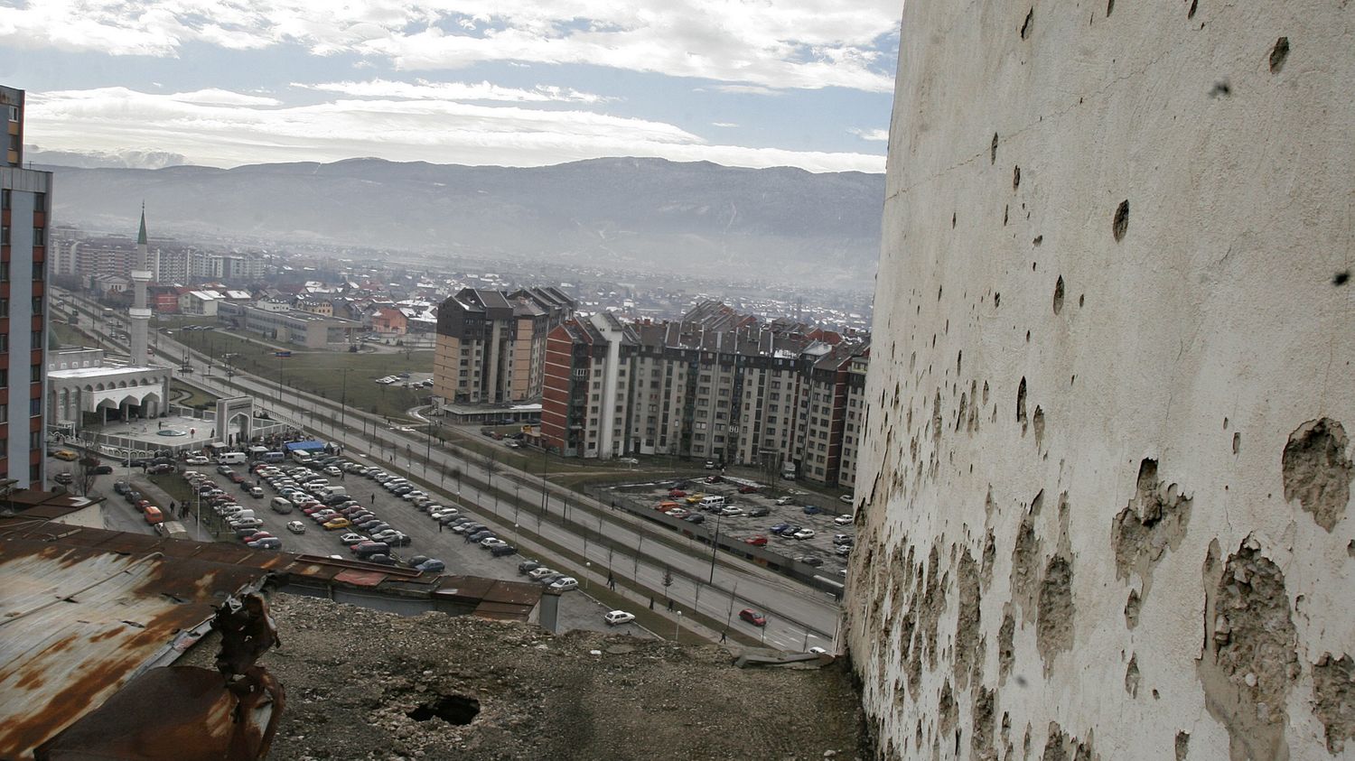 The bullet holes originate from the siege of Sarajevo (Bosnia-Herzegovina), the longest in modern history (from 5 April 1992 to 29 February 1996). (JEAN FRANCOIS COLLIN / MAXPPP)