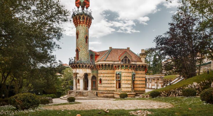 El Capricho may not have been very large – 720 square meters was a trifle for the palaces of the Comillas Indians – but it was an ostentatious work, designed to amaze visitors before they even approached the front door. The property is surrounded by a beautiful garden in which one can glimpse some of the elements of the landscape language that Gaudí would fully develop in Park Güell almost two decades later, such as the rustic stone walls that absorb the steep slope of the land and transform into benches and even a cave.