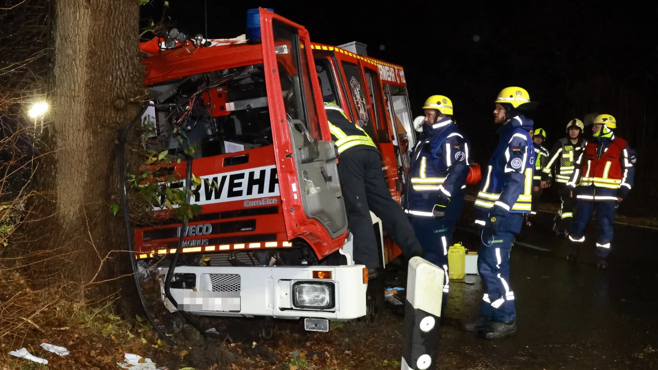Two firefighters – the driver and a passenger – were trapped in their vehicle and, according to information from BILD, were seriously injured. Several emergency doctors and rescue services rushed to the accident site. Rescue helicopters were alerted but were unable to land due to strong winds and heavy rain.