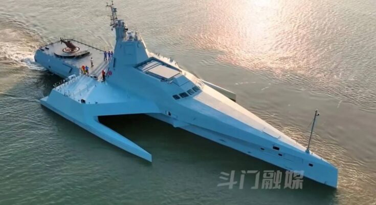 What do we know about this drone ship? As reported by the site Navy NewsA mysterious warship is being built Huangpu Shipyardusually associated with frigates and corvettes. Satellite image analysis shows a very long and slender vessel, with a trimaran stabilizer at the very stern. This vehicle has characteristics similar to a submarine and a large boxy casing along the length bow deck. We can assume that the ship was probably unmanned, or at least had a small crew, as space for traditional accommodation was limited and the superstructure was small and cramped.