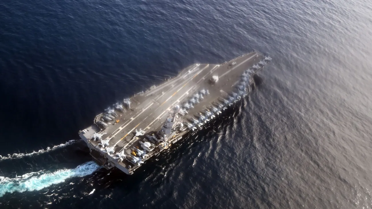 The US aircraft carrier “USS Gerald R. Ford” is the largest warship in the world. It is 333 meters long and can accommodate up to 90 fighter planes and helicopters and several thousand troops. It is powered by a nuclear reactor and named after the 38th President of the United States.
