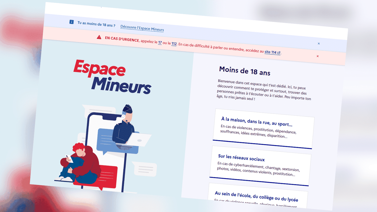 Minors now have a special platform, launched on Thursday, to alert the police and gendarmerie if they experience or witness violence.