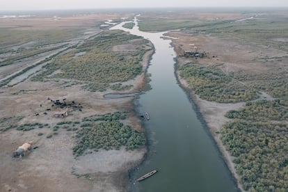 “Look! We are all sad. Not only because many have lost their jobs or been forced into exile, but because the most precious thing we have is dying before our eyes.” Sitting cross-legged next to a dry canal in Chibayish, a small, desolate town on the banks of the Mesopotamian swamps, Haidar, 42, is desperate. Looking blank, this former fisherman says he has already stopped counting the relatives and neighbors who left as the waters receded. He hasn’t taken that step yet, but he is fully affected by the changes taking place. Coming from a family of fishermen, he had to abandon his profession. “Everything happened very quickly. In 2014 I left, like many men in the great south of Iraq, to fight the Islamic State, which threatened the country. When I returned three years later, the water level had dropped so much that, with a broken soul, I was forced to change my life. I felt as if I was betraying my ancestors, but I had no choice”, he comments in a flat, almost resigned voice.