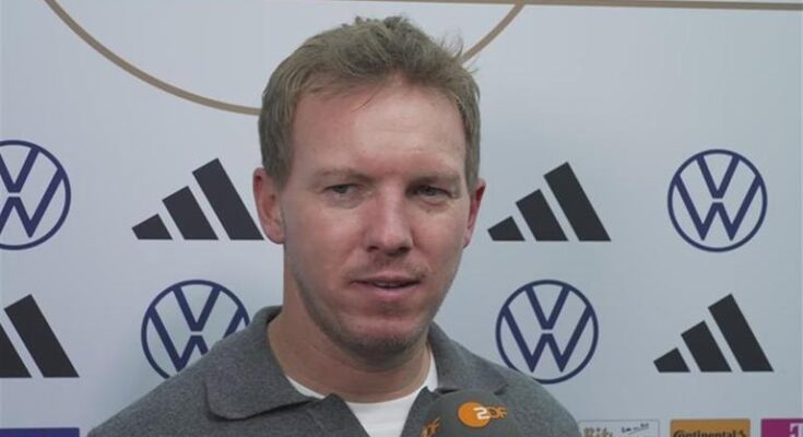 National coach Julian Nagelsmann is interviewed after the win against Northern Ireland.
