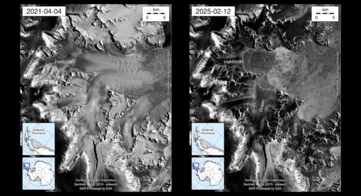 However, Berthier explains in detail how this whole process is also linked to the disintegration, in 2002, of the gigantic ice barrier called Larsen B. That phenomenon which occurred more than two decades ago accelerated the melting of the glaciers that were about to give way to this floating platform, since the ice barriers on the sea act like a bottle cap that contains the melt that comes from the land. “After all, the entire evolution of this Antarctic region is linked to global warming,” underlines the glaciologist, who believes that the collapse of Larsen B and the current record of the Hektoria glacier are part of “a chain reaction” caused by rising temperatures.