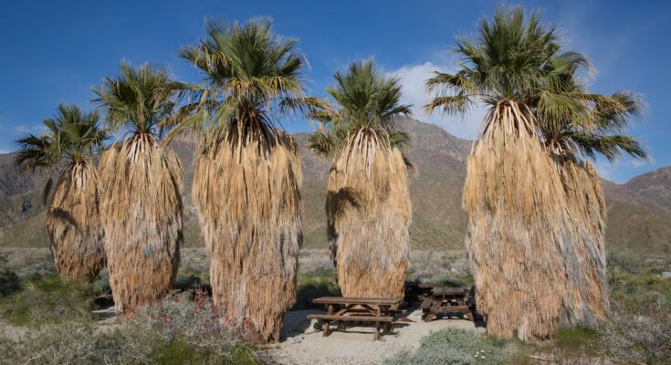 Washingtonia is one of the most cultivated palms in Spain and in the world. There are two species of this genus, although we will later see that its current classification is a little more complicated. We’ll talk about it Washingtonia filifera —with a wide stem and a height that usually does not exceed 20 meters—e Washingtonia robusta – with a slender, fine and very tall stem, which reaches up to 30 metres. Depending on the publications, the hybrid that emerged between these two species is sometimes called the so-called Washingtonia X obstructionism. All of these palms come from California, USA, and Baja California and Sonora, Mexico. In those lands, Washingtonias often appreciate the proximity of cacti of all types and varieties.