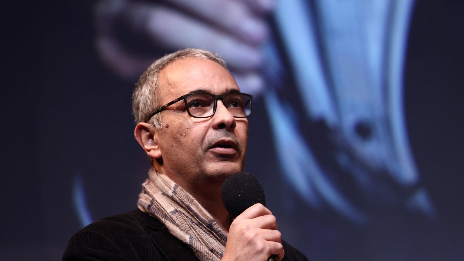 Writer Kamel Daoud at a support event at Boualem Sansal, February 18, 2025. (BEHROUZ MEHRI / AFP)
