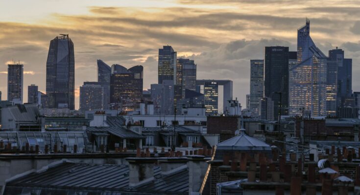 La Défense district, near Paris, where several CAC 40 companies are headquartered, March 25, 2023. (FRED DUGIT / MAXPPP)