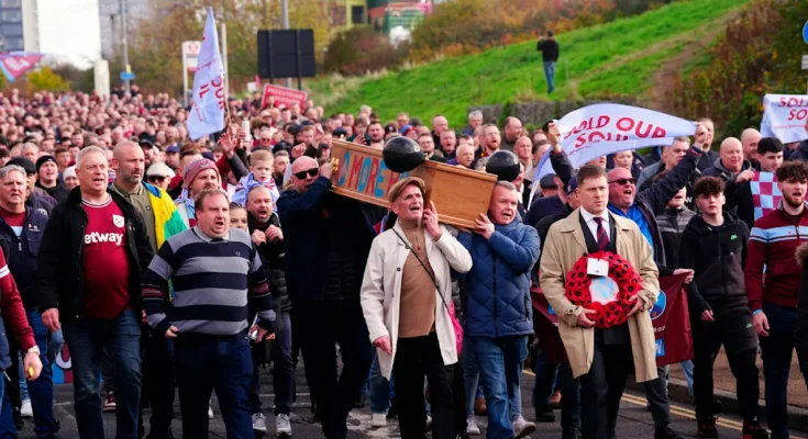 Thousands of fans of relegation-threatened West Ham United protested strongly against the club’s management before the home match against Burnley (3-2) in London – and carried coffins in the streets.